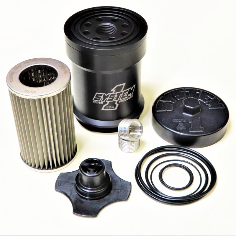 There are a number of important advantages provided by System 1 High Performance billet aluminum canister-style oil filters with easily-cleaned stainless steel mesh elements. They are available in various sizes and filtration levels for virtually every race car, street machine, industrial and motorcycle application due to a wide selection of spin-on, in-line and special mounts. Important attributes include: